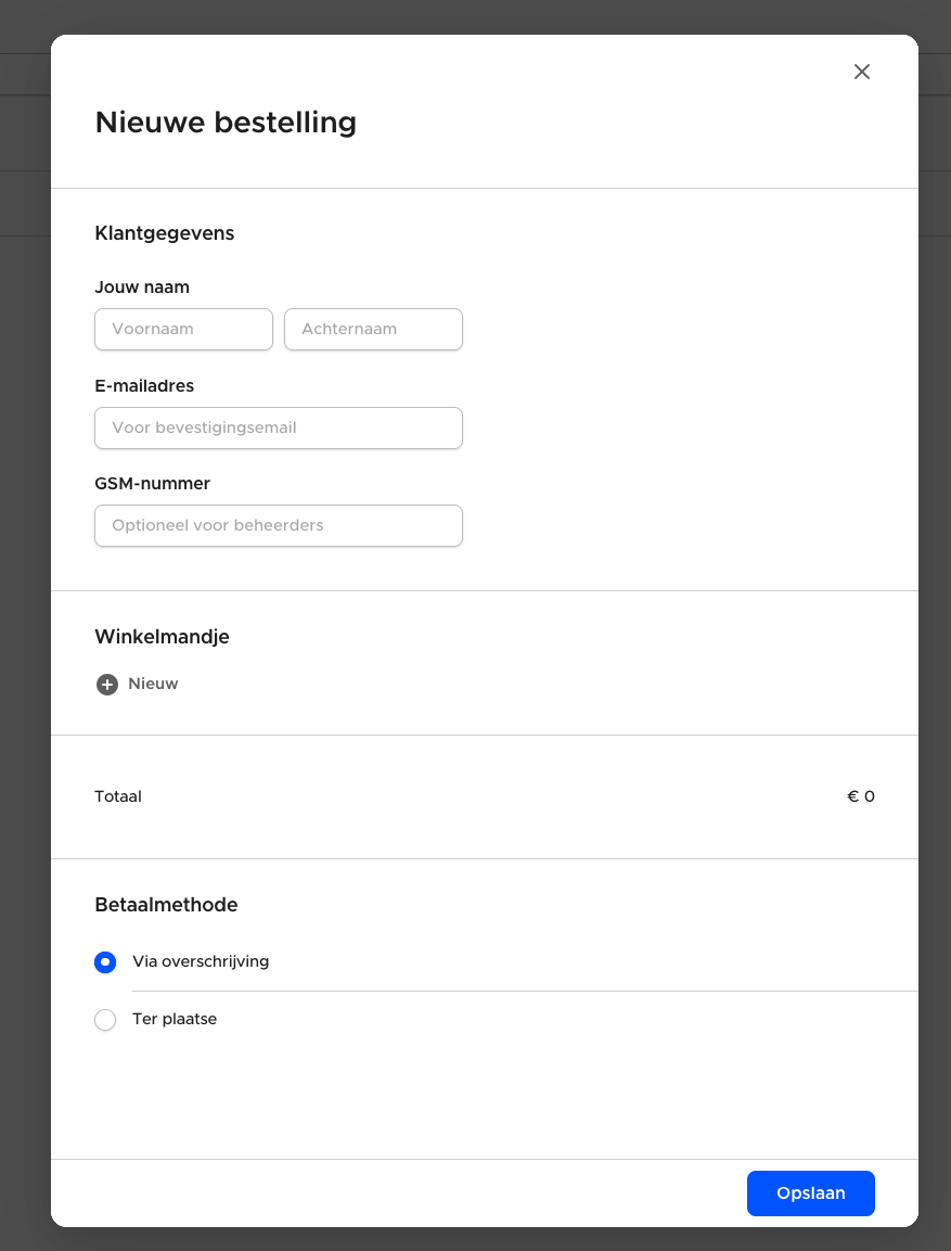 Als mensen bellen of e-mailen voor tickets of een bestelling te plaatsen, kan je in Stamhoofd nog steeds manueel een bestelling ingeven. Daarbij worden de tickets (of bevestigingsmail) verstuurd naar een e-mailadres dat je zelf kan ingeven. Als mensen geen e-mailadres hebben, kan je je eigen e-mailadres ingeven en het eventueel zo afdrukken en klaarleggen voor die mensen.
