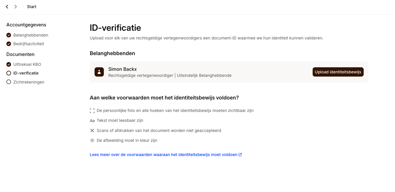 Ga verder door alle stappen, zoals de ID-verificatie.
