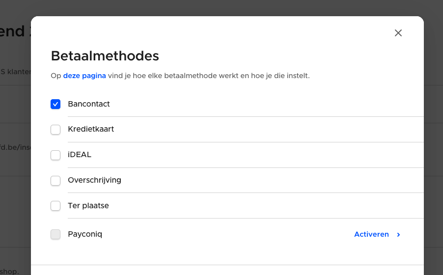 Vergeet de betaalmethodes niet aan te vinken
