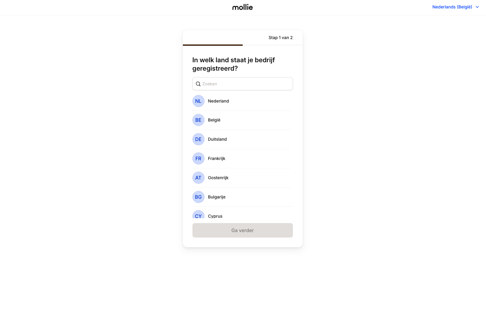 Op het Mollie dashboard krijg je een checklist van alle todo's die je nog moet aanvullen. Klik onderaan op 'Ga verder' om alles netjes aan te vullen.