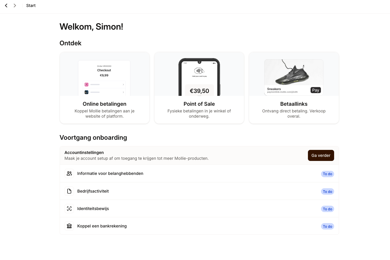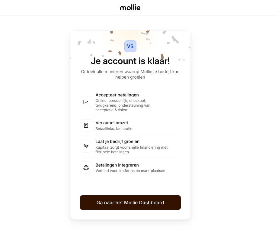 Klaar! Wacht nu tot Mollie je account heeft goedgekeurd.
